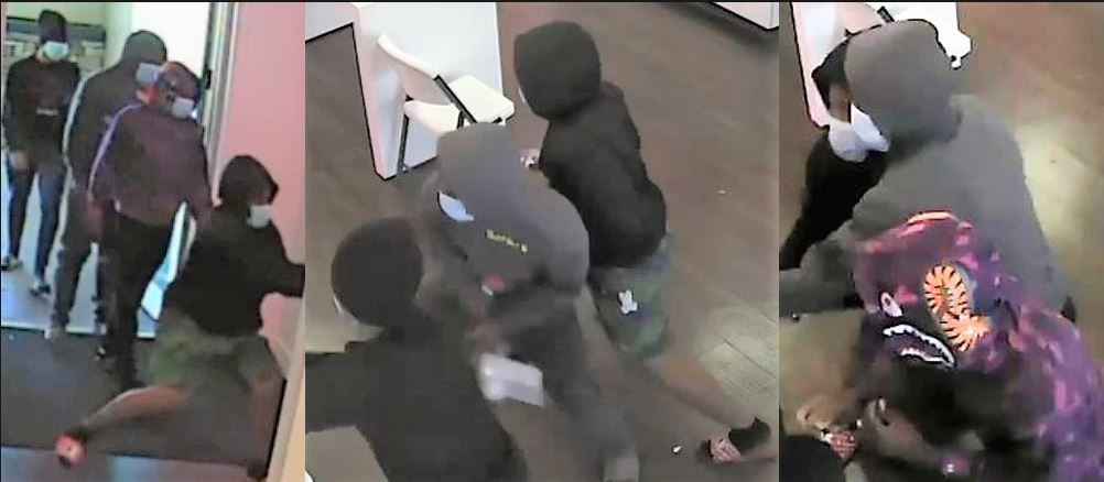 The four suspects got into a blue 2020 Dodge Charger (4-door) Hellcat (FL Tag: 53BUHV), driven by a fifth suspect.