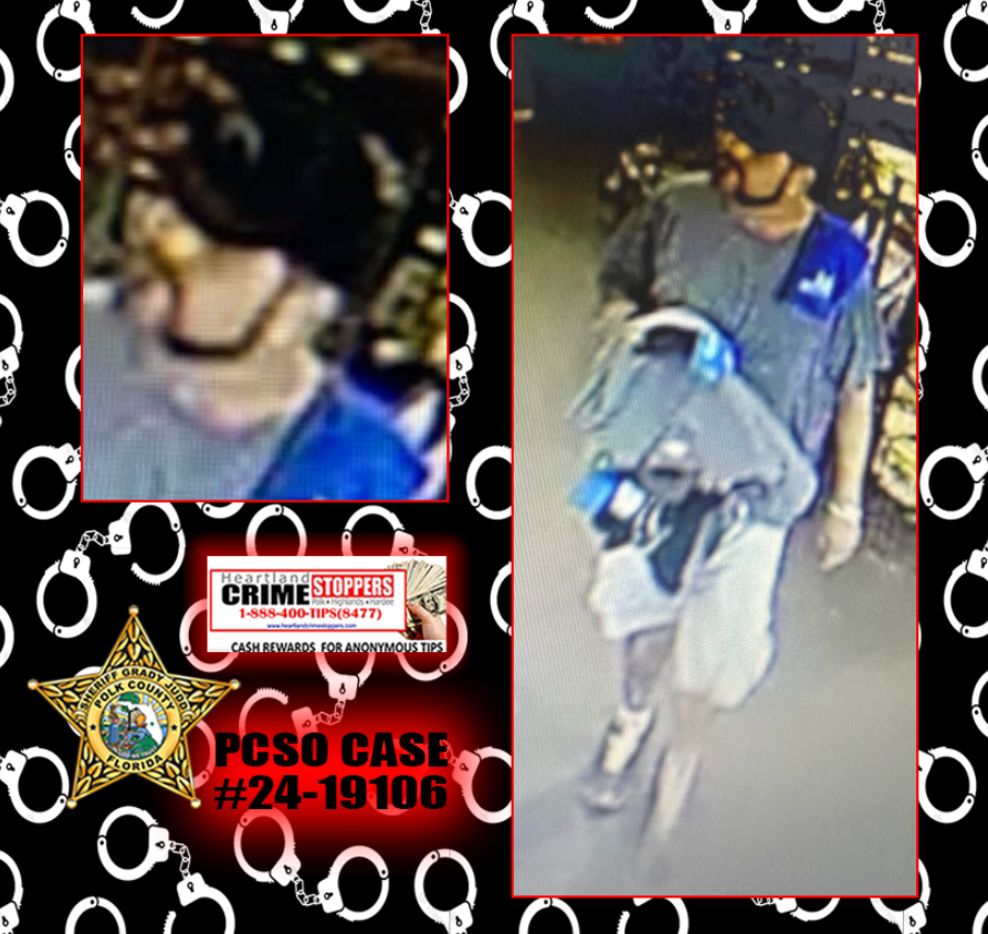 Detectives from the Polk County Sheriff's Office are trying to identify the man in these photos, as part of their investigation of a retail theft that occurred on May 8th at the Tractor Supply store (6945 US 98 North, Lakeland).