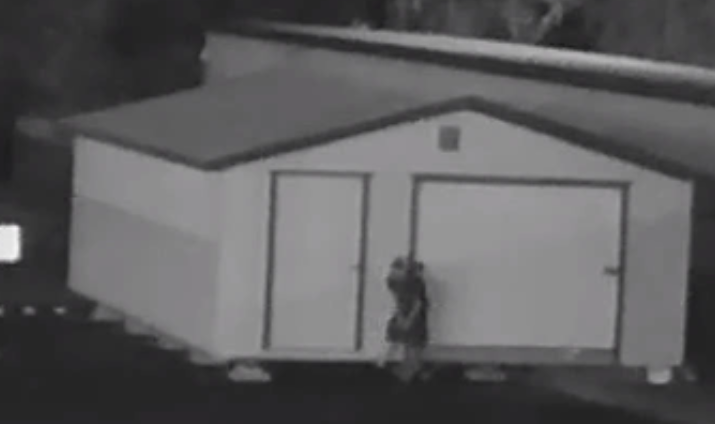 Surveillance video collected during the investigation showed the pictured suspect, who appears to be a light skinned male with short hair, dark colored shorts, a dark t-shirt and dark shoes attempting to pry open the storage shed.
