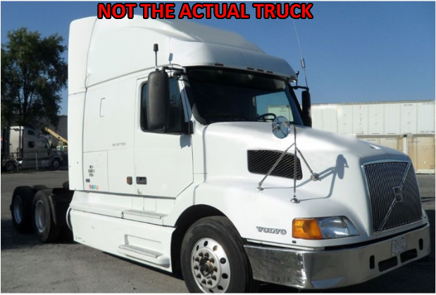 The truck in the photo is not the actual missing truck, but very similar. The stolen truck is a white 2000 Volvo Semi-tractor with Georgia tag: RKI1977.